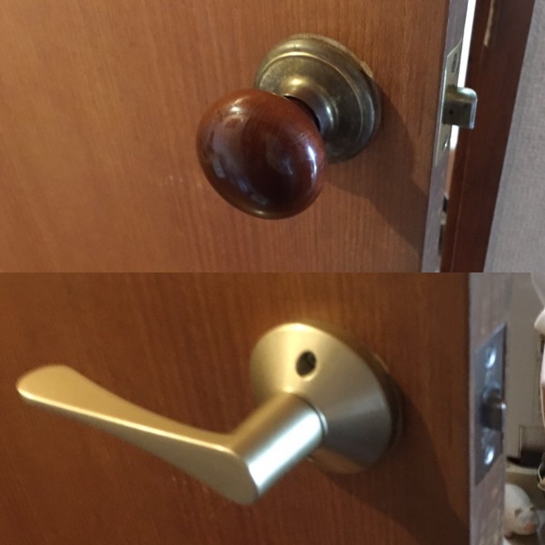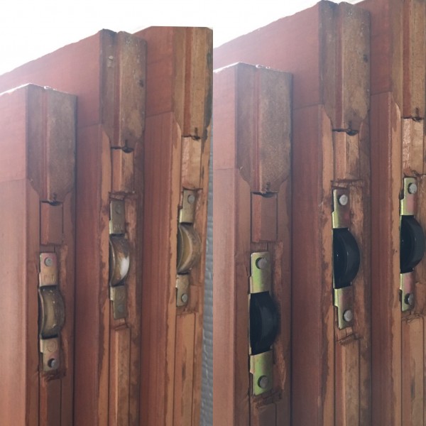 写真は「セブンハンドルの交換」、「ドアの戸車の交換」、「ドアノブの交換」です。