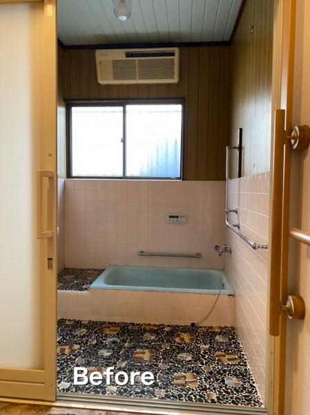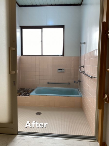壁塗装、古いタイプの換気扇撤去、床タイル貼り換え、クリーニングで仕上げております。