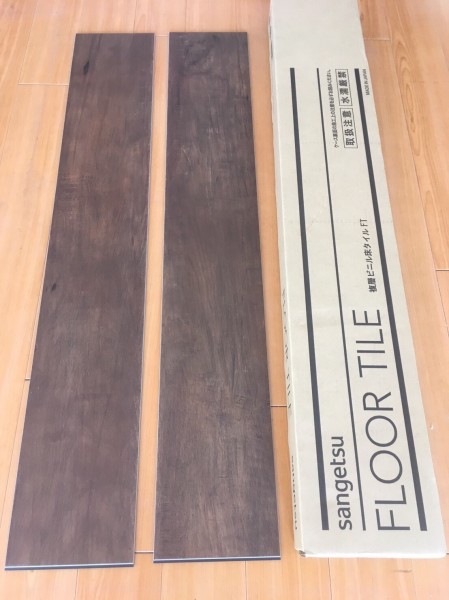 こちらは色味や風合いが微妙に異なるビニル床タイルをバランスよく組み合わせて貼っていきます。
